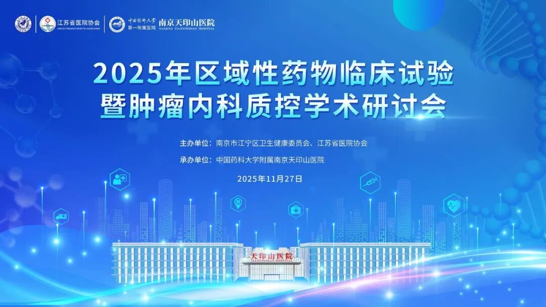 2025年11月27日下午,由江宁区卫生健康委员会、江苏省医院协会主办,中国药科大学附属南京天印山医院承办的“2025年区域性药物临床试验暨肿瘤内科质控学术研讨会”在南京天印山医院负一楼行政会议室成功...